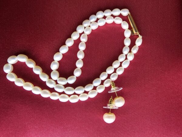 • Size: Necklace pearls approx. 5 mm; stud pearls about 9 mm.